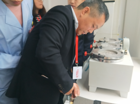 當(dāng)然只是看看怎么夠,實(shí)驗(yàn)室的小哥帶領(lǐng)各位合作商親自體驗(yàn)了賽騰瀝青瓦國(guó)家級(jí)實(shí)驗(yàn)室,親自參與實(shí)驗(yàn),指導(dǎo)大家如何檢驗(yàn)瀝青瓦的各項(xiàng)指標(biāo)。
