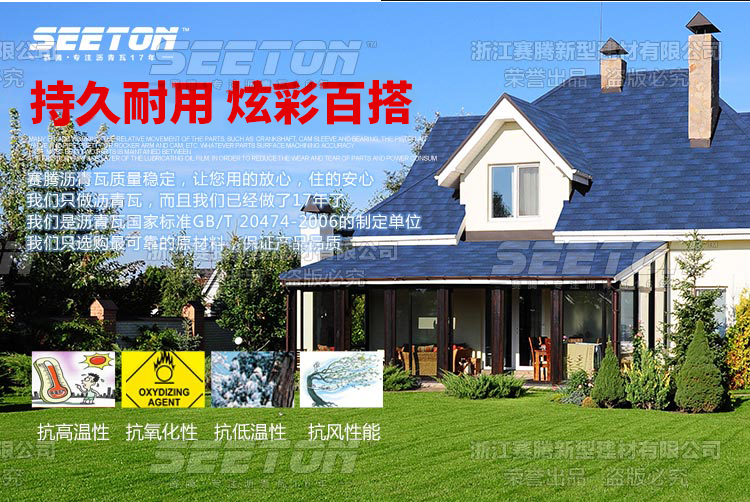 常規(guī)單層標(biāo)準(zhǔn)型瀝青瓦采用三垂片設(shè)計(jì),再配以特有的賽騰跳色技術(shù),大大增強(qiáng)單層瓦的美觀程度,層次感立體感將你帶入一個(gè)全新的視覺(jué)盛宴。 使用年限:20年 執(zhí)行標(biāo)準(zhǔn):GB/T20747-2015