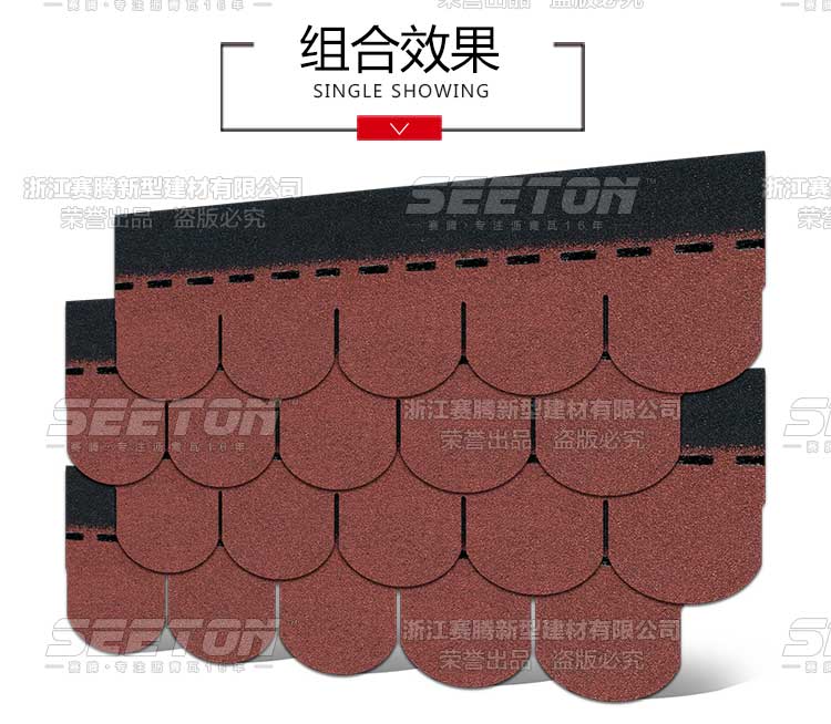 魚(yú)鱗型采用弧形五垂片設(shè)計(jì),具有很強(qiáng)的適應(yīng)性,能夠安裝有彎曲和不同坡度的屋面上,特別適用于10度以上圓球形,錐形,扇形及不規(guī)則坡屋頂應(yīng)用。