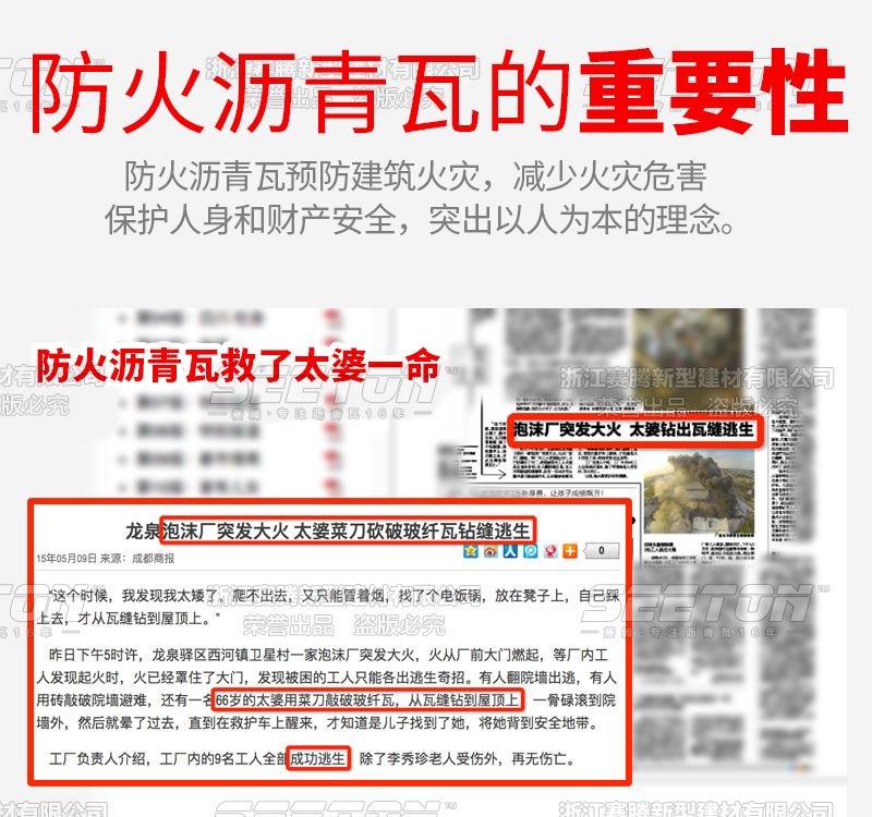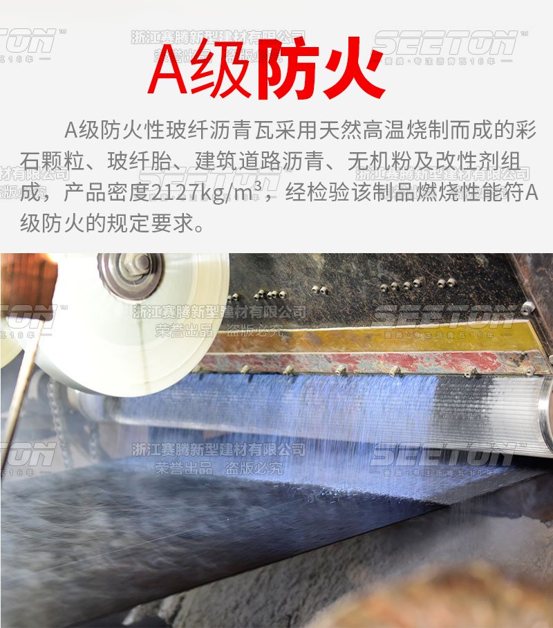 A級(jí)防火型除抗風(fēng)防水性能以外,還有較理想的隔音效果,能很好的吸附和減輕雨水對(duì)屋面的撞擊聲及其他噪音,保證了一個(gè)安靜優(yōu)質(zhì)的生活條件。