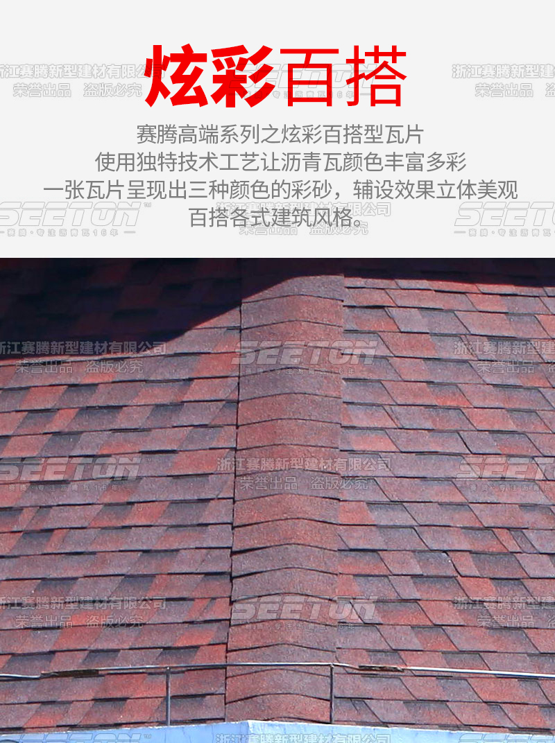 炫彩白搭型除抗風(fēng)防水性能以外,還有較理想的隔音效果,能很好的吸附和減輕雨水對屋面的撞擊聲及其他噪音,保證了一個(gè)安靜優(yōu)質(zhì)的生活條件。