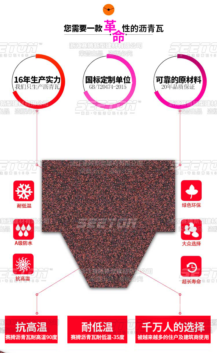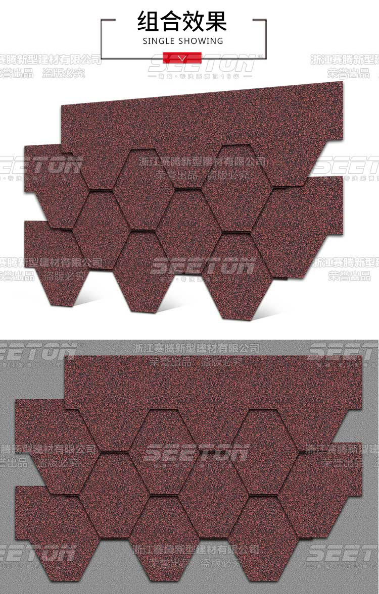 別出新裁的六邊形組合設(shè)計(jì),獨(dú)特的陰影配上隨機(jī)的跳色演澤著無限優(yōu)雅之美,其全背膠更是加強(qiáng)了抗風(fēng)防水性能。