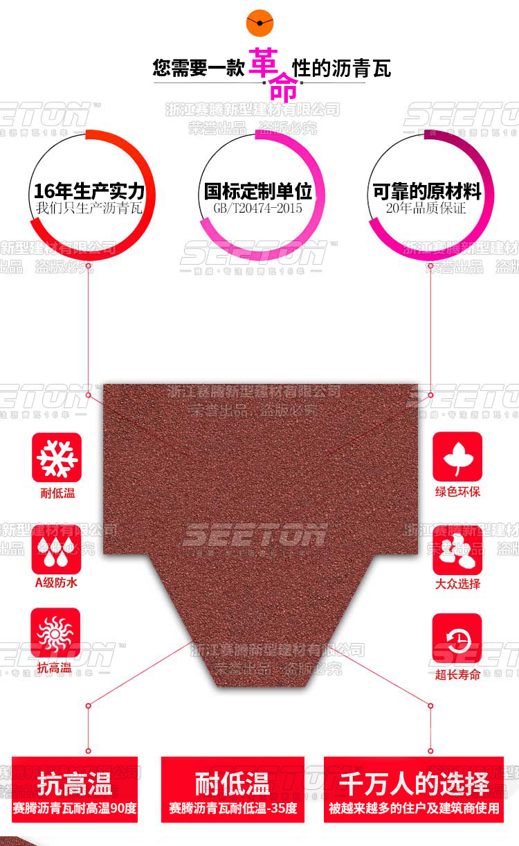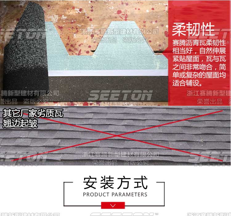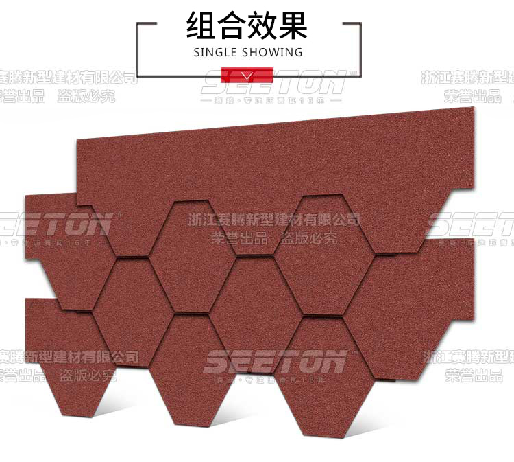 別出新裁的六邊形組合設(shè)計(jì),獨(dú)特的陰影配上隨機(jī)的跳色演澤著無(wú)限優(yōu)雅之美,其全背膠更是加強(qiáng)了抗風(fēng)防水性能。