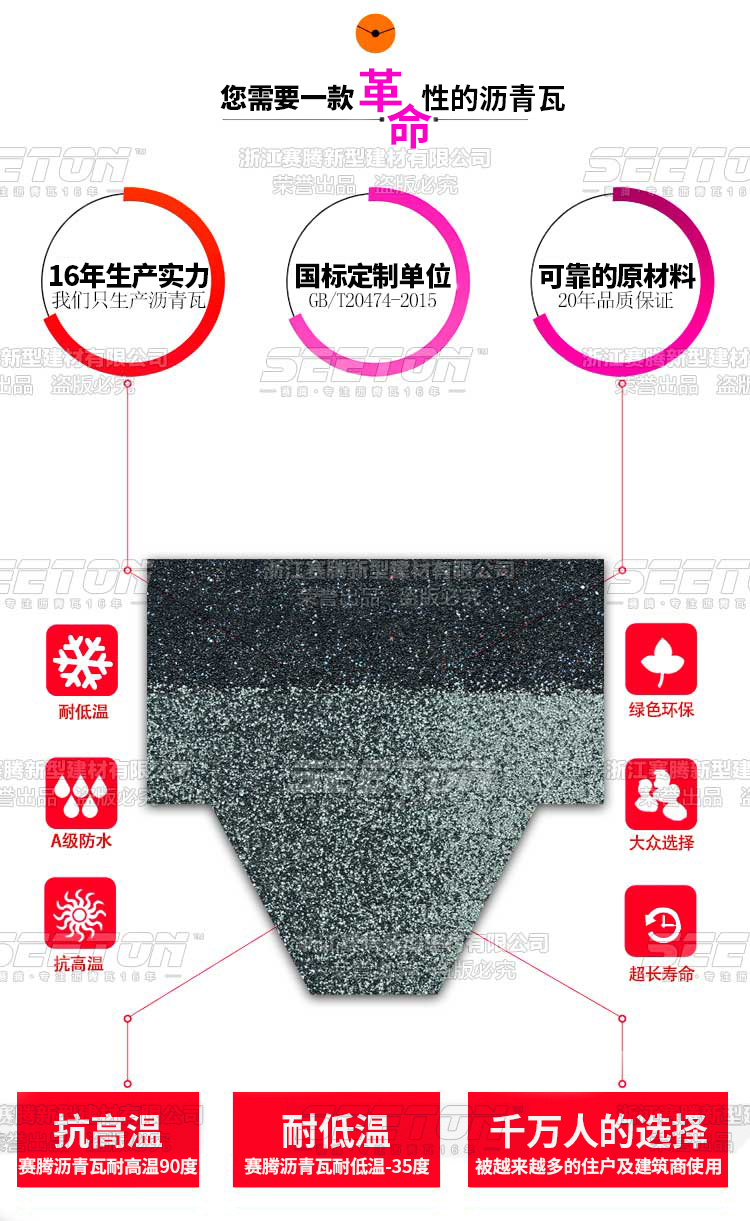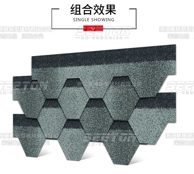 別出新裁的六邊形組合設(shè)計(jì),獨(dú)特的陰影配上隨機(jī)的跳色演澤著無(wú)限優(yōu)雅之美,其全背膠更是加強(qiáng)了抗風(fēng)防水性能。